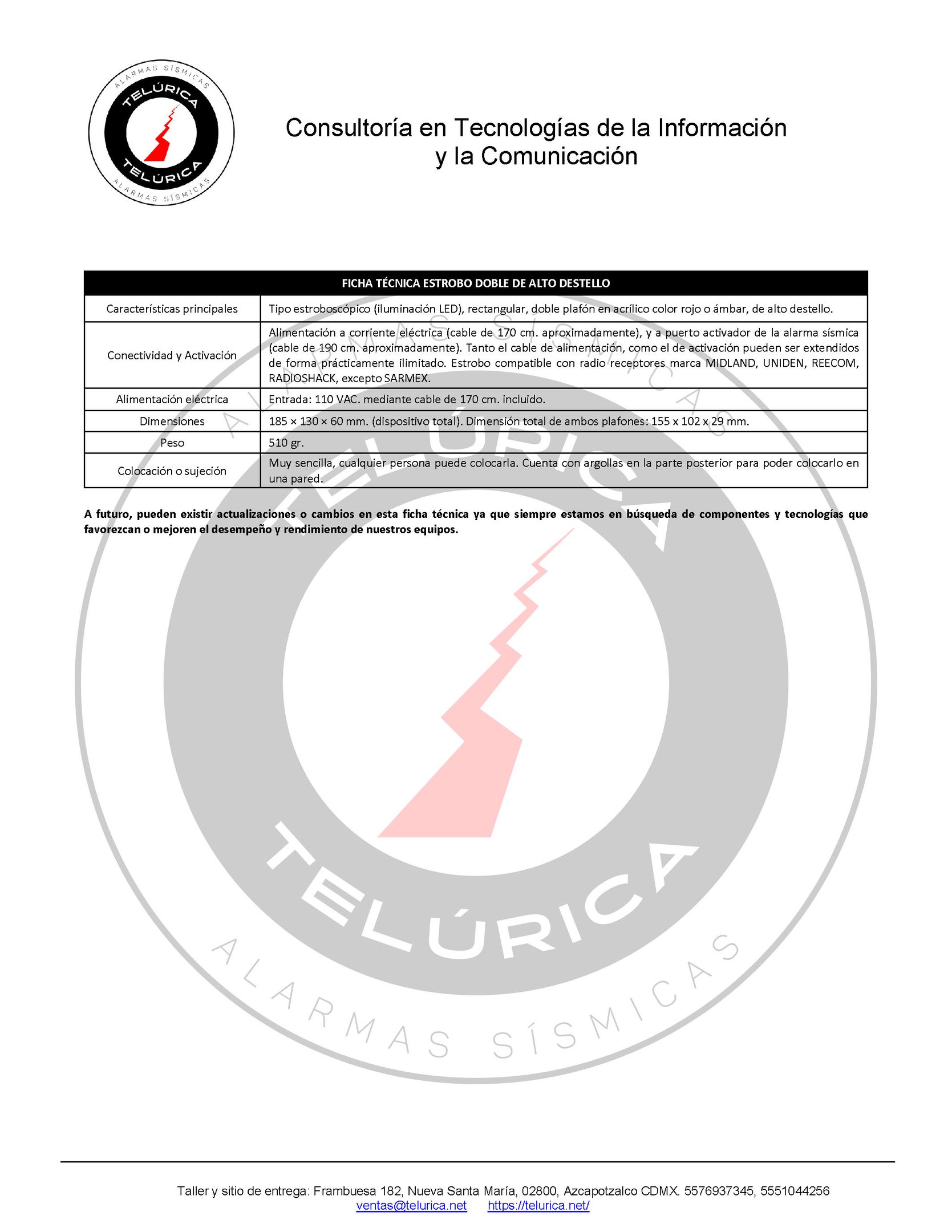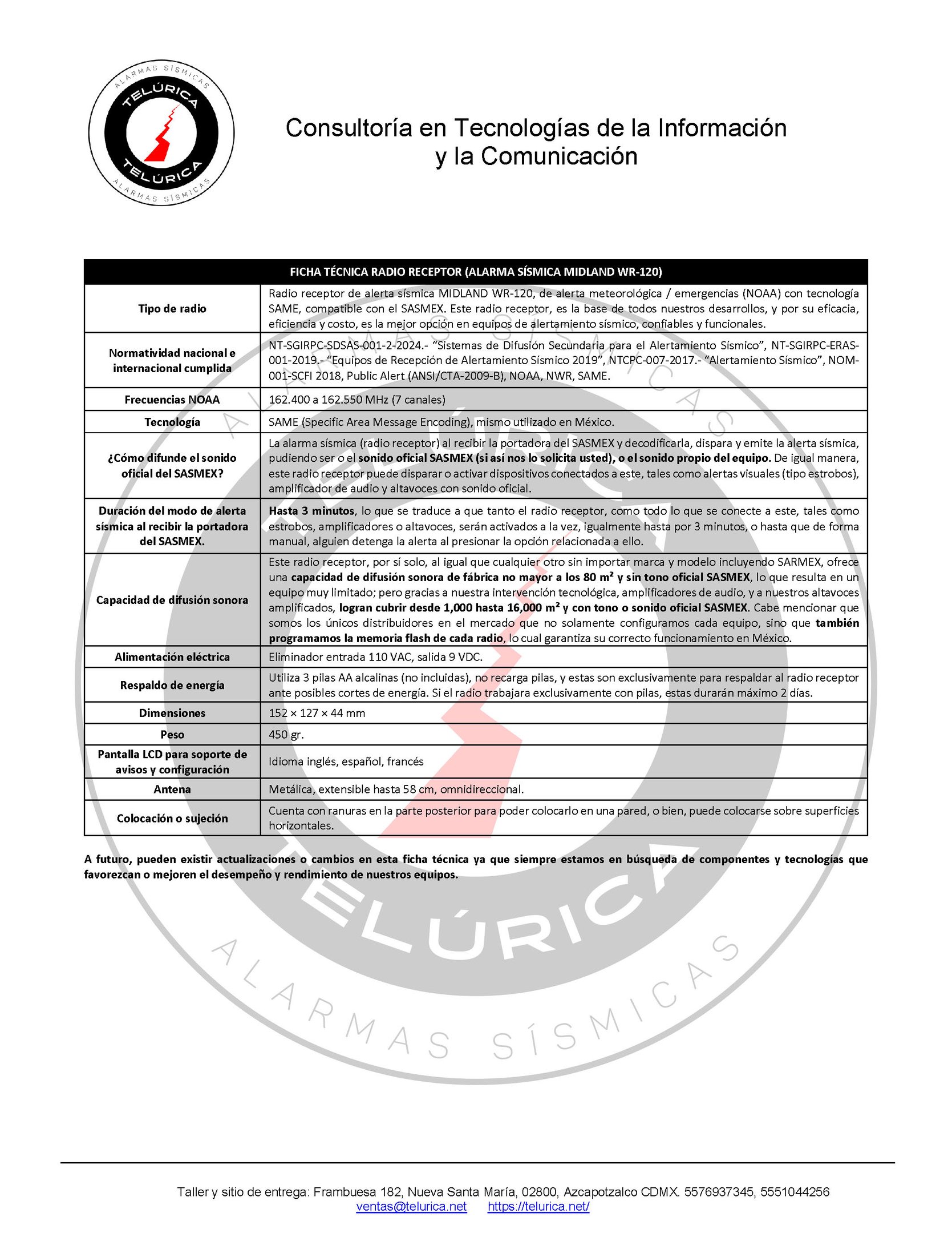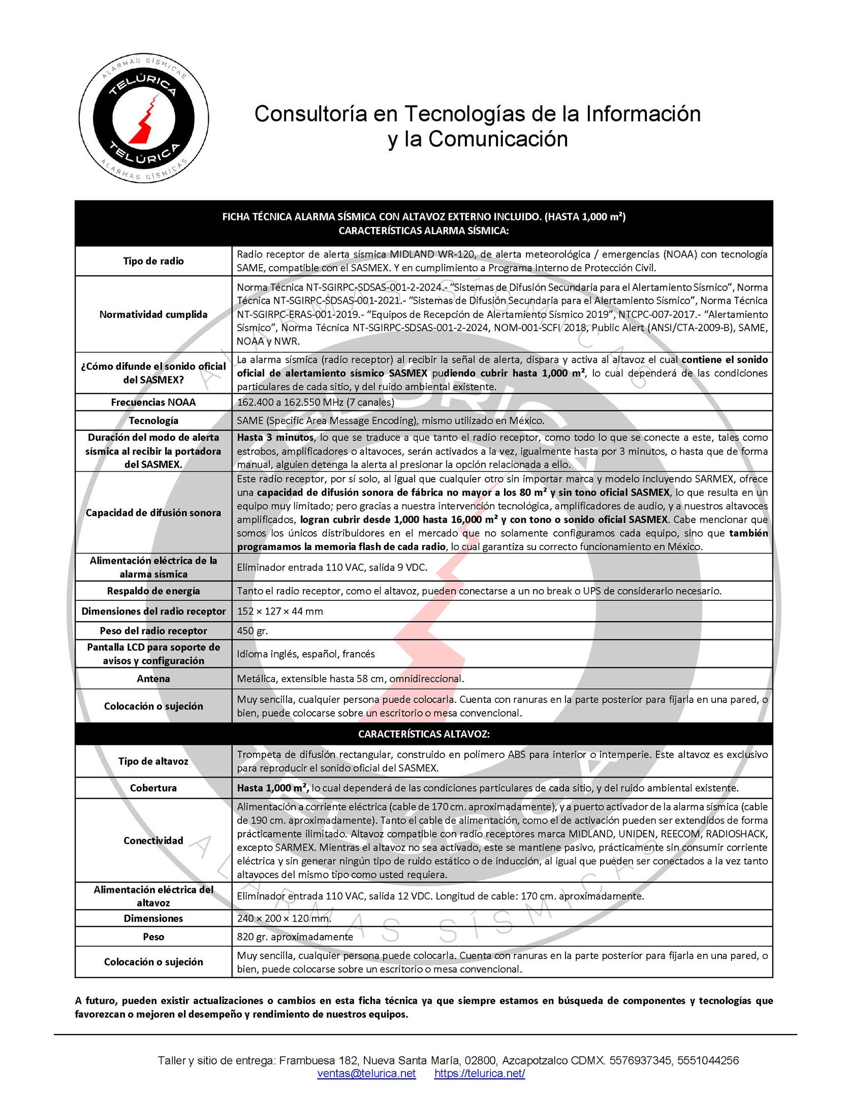 Compatible con todas las marcas de Alarma Sísmica, excepto SARMEX.