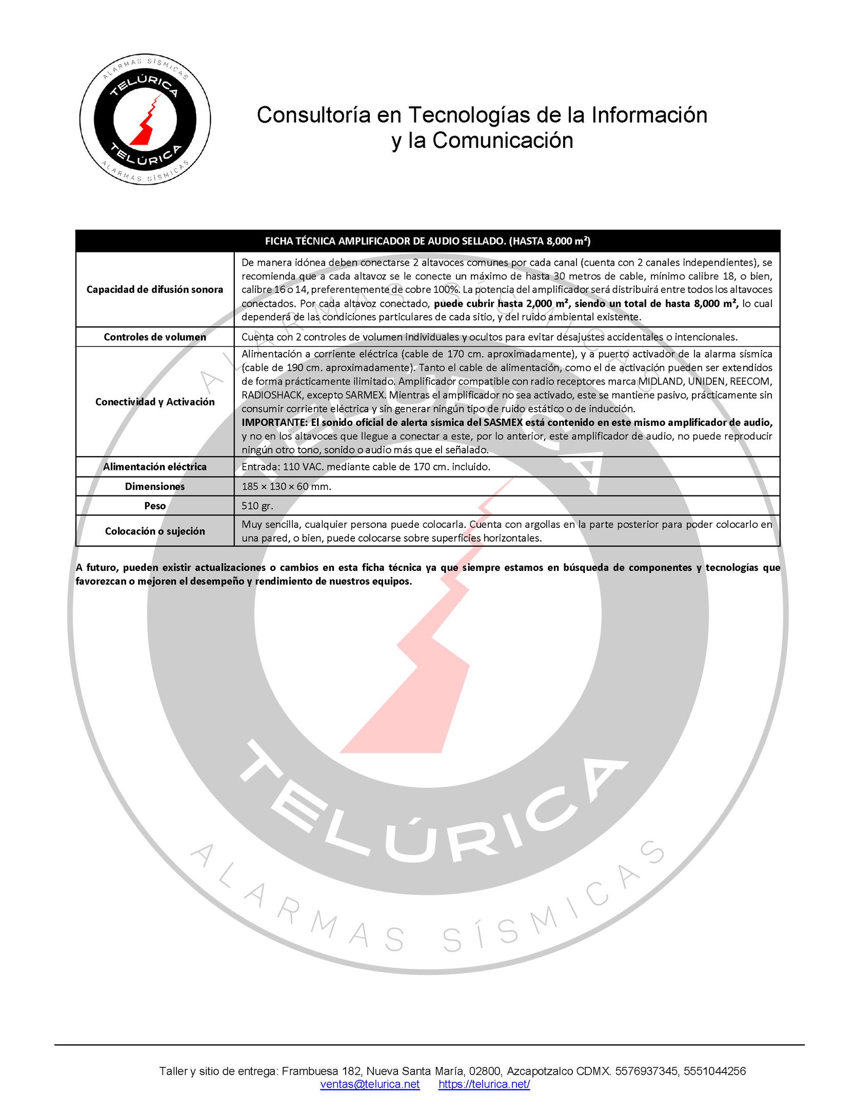 El amplificador incluye y reproduce exclusivamente el tono oficial del SASMEX.