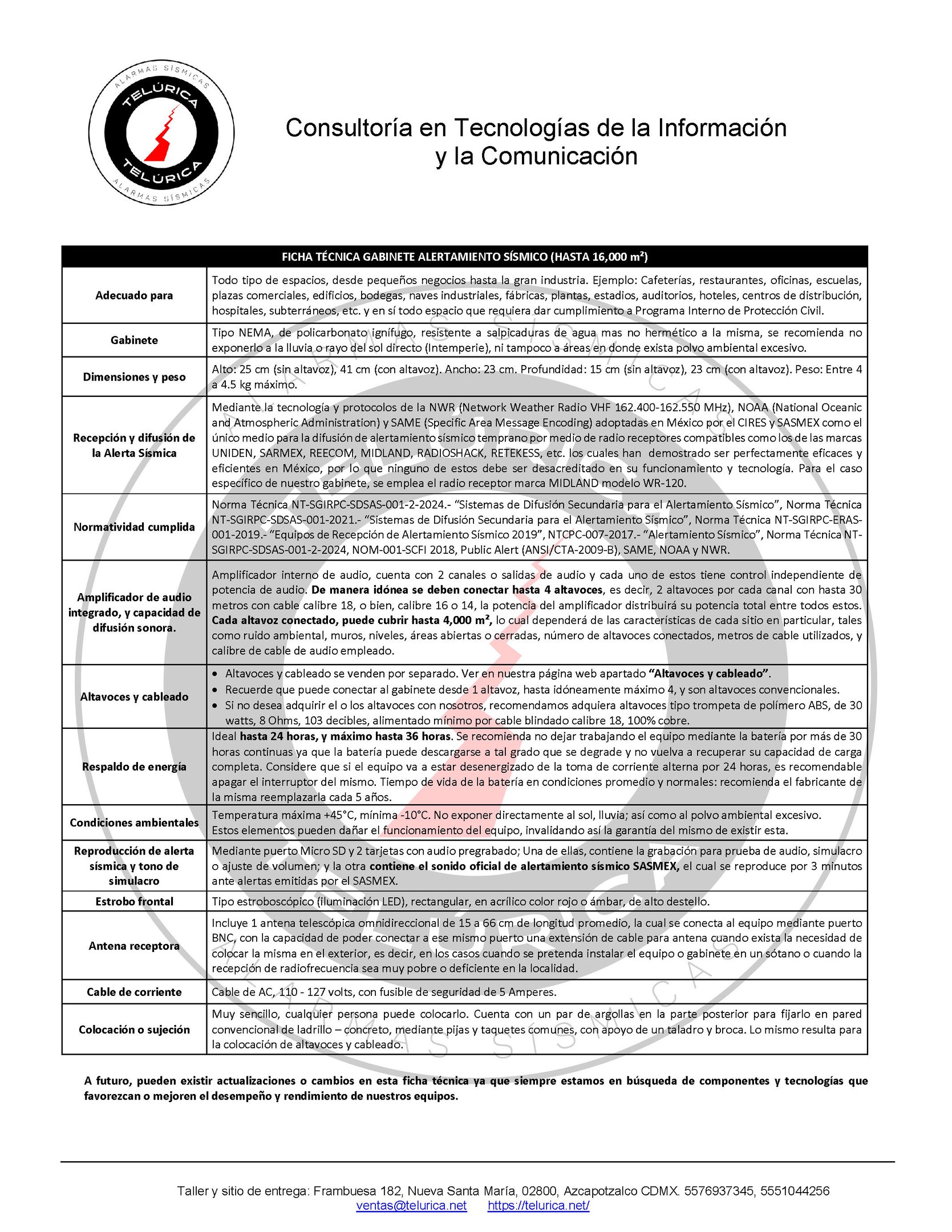 Cumple las normatividades de alertamiento sísmico ante Protección Civil.